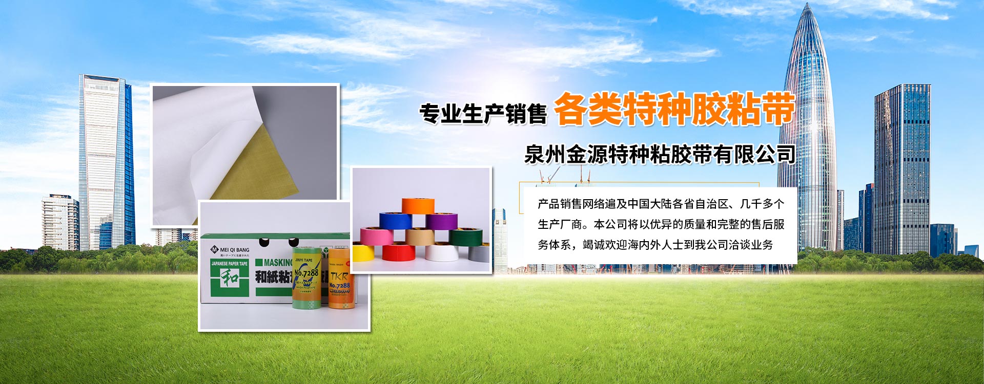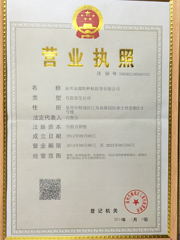 泉州金源特種粘膠帶有限公司于2001年成立,是泉州新型的民營企業,總投資265萬元人民幣,占地765平方多米;廠部位于中國海上絲綢之路起點——福建泉州。